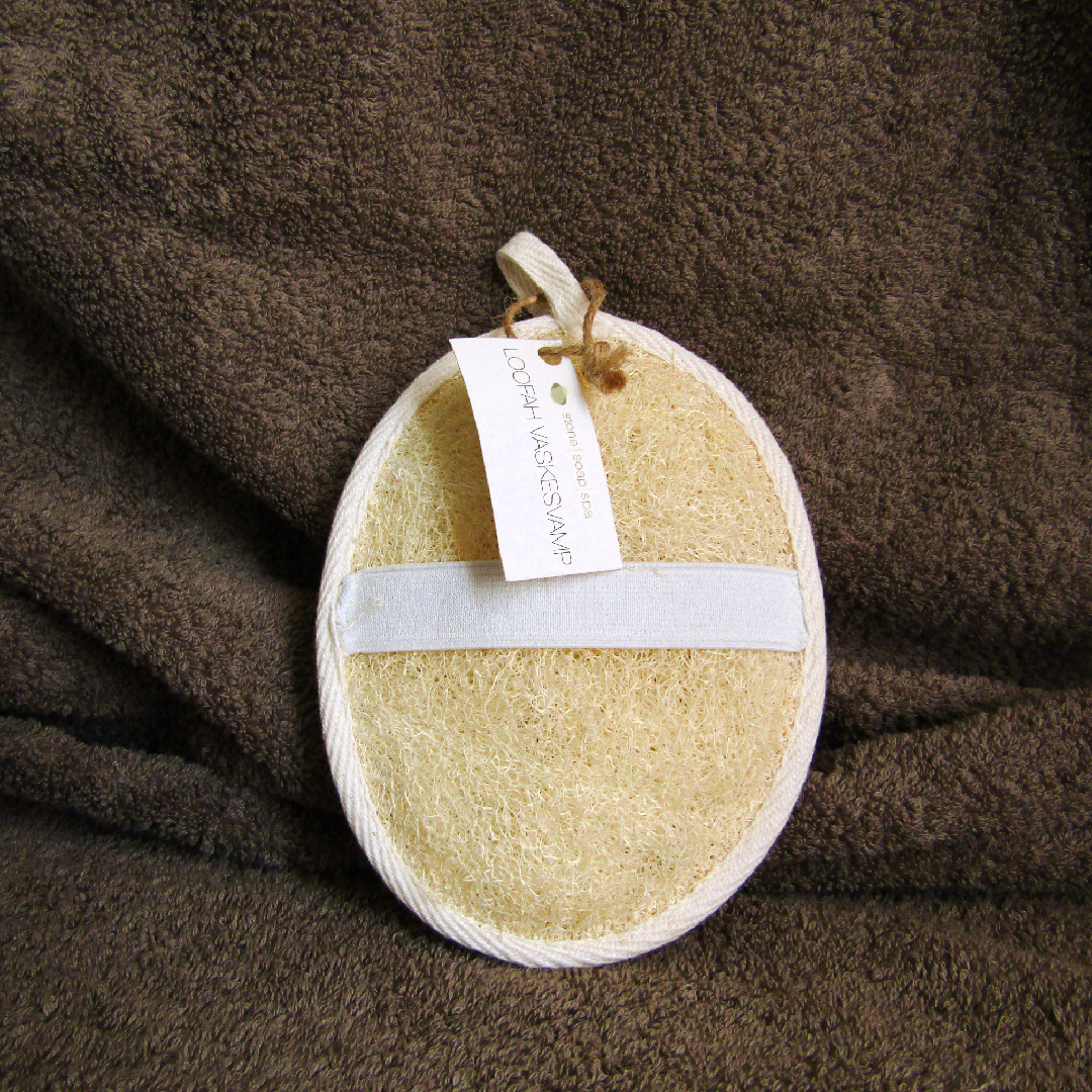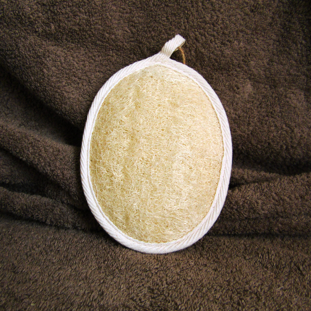 The sponge feels hard when dry, but soft when wet. The sponge then feels like a firm terry cloth, which is still rough enough to remove old skin cells. Using the sponge while massaging activates all skin functions and increases blood circulation in the skin, which slows down the aging process of the skin. Regular use of the loofah keeps the skin young, fresh, shiny and radiant. The loofah can also be used for a facial scrub. (Read the full article)